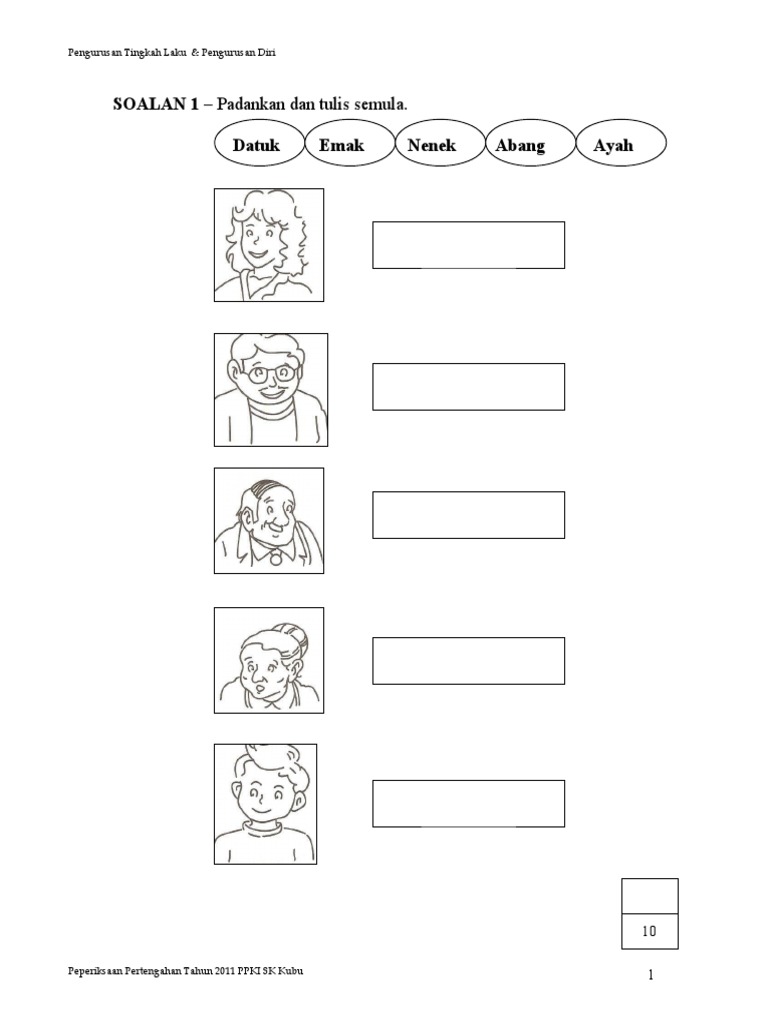 Set Latihan Berfokus UPSR 2016 Sains Kertas 2. 10 Peperiksaan Pertengahan Tahun 2011 PPKI SK Kubu 4 Pengurusan Tingkah Laku Pengurusan Diri. 10 Soalan 4 Suaikan gambar pakaian di bawah mengikut jantina masing-masing.